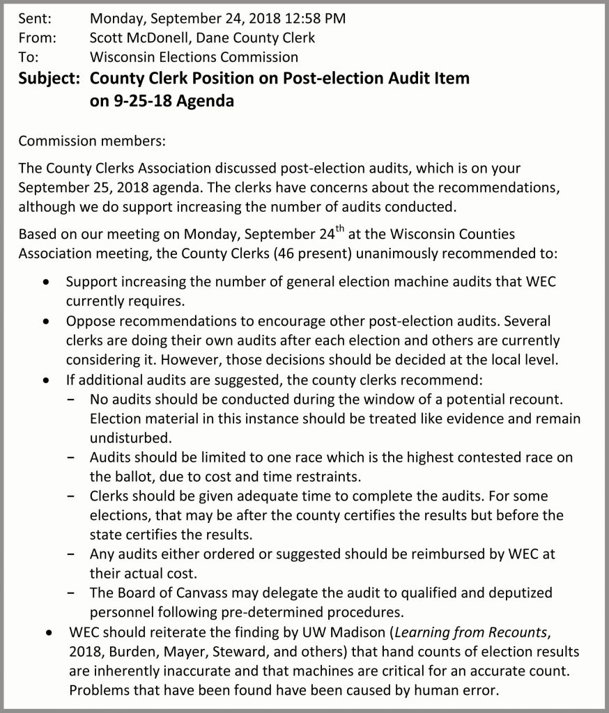 However, in most states including Wisconsin, election officials trust the voting machines and the programmers. Full stop. They make no effort to detect outcome-altering miscounts; they have no plans in place to correct the results if miscounts make themselves known. Occasionally, Wisconsin officials check a few randomly selected voting machines’ tallies against the paper ballots, but even if those audits notice one miscounting machine, the officials do not expand the audit to verify the outcome and do not claim to.